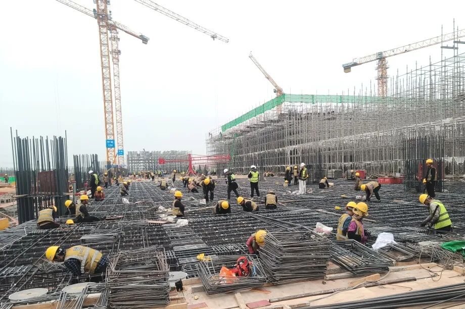 日均绑扎钢筋约 460 吨,土方累计开挖超 25 万立方米,混凝土累计浇筑 27 万立方米,车辆穿梭、机械轰鸣、大干快上,一起走进火热的施工现场。