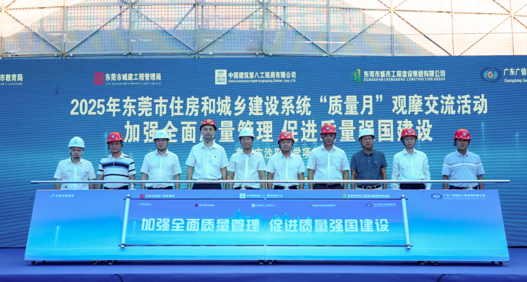 2025-09-19 2025年东莞市“质量月”观摩走进中建八一沙田中学项目 9月18日,2025年东莞市住房和城乡建设系统“质量月”现场观摩交流会走进中建八局承建的东莞市沙田中学(湾区中学)项目,交流管理经验和先进成果,助力全市工程质量安全水平提升。