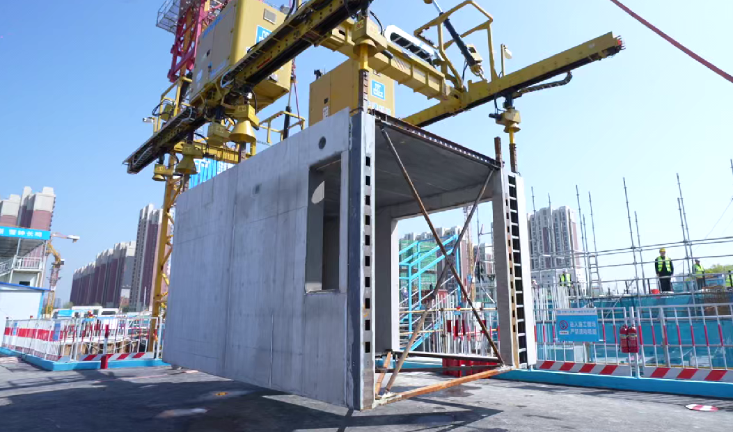 在济南中建・大学里住宅项目现场,一栋 53. 5 米高的建筑由 288 个 “建筑积木” 拼装而成,实现了 “12 分钟一面墙、2 小时一间房” 的高效建造。