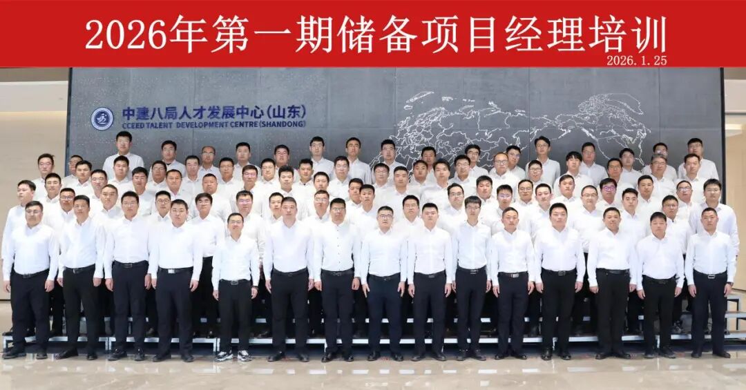 为夯实项目基础管理,强化后备人才梯队建设,1月24日至26日,公司2026年第一期“登高·淬火成钢”储备项目经理培训班在中建八局人才发展中心(山东)举办,来自各二级单位的80余名储备项目经理参加。