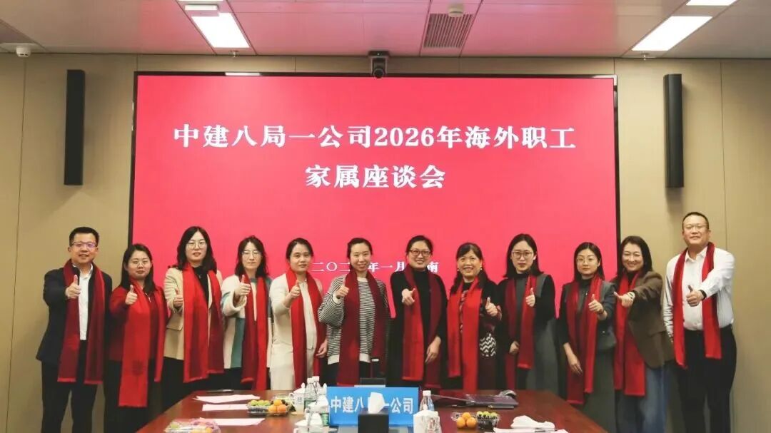 1月31日,农历新年即将到来之际,中建八局一公司举办2026年海外职工家属座谈会,邀请海外职工家属到公司总部话家常、叙心声、送祝福。 公司党委副书记、工会主席聂丽,工会工作部、海外公司相关负责人及海外员工家属代表参加会议。