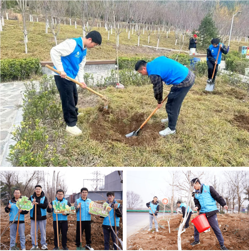 在山东,济南公司青年志愿服务队、绿色建筑发展公司团总支分别开展志愿植树活动,累计栽种杨树、山楂、杏树、桃树等苗木共计70余棵;聊城脑科医院项目联合院方开展“植此青绿,‘脑’有所依”植树节活动,青岛公司红岛安置房东部组团项目联合红岛街道开展植树造林活动,栽种杨树58棵;安装公司青岛片区党支部联合青岛地铁运营三中心、李沧区综合执法局,前往青岛市北岭山森林公园为50余棵树木养护灌溉。