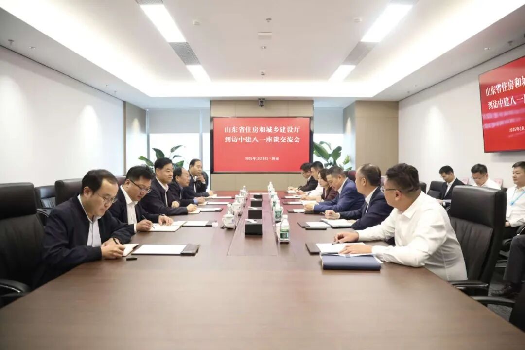 10月9日,山东省住房和城乡建设厅党组书记任海涛一行到公司调研。山东省住房和城乡建设厅总工程师王强,建筑市场监管处处长李永刚,房地产市场监管处处长娄保来,办公室一级主任科员滕德磊;中建八局一公司党委书记、董事长牛化宪,党委副书记、工会主席聂丽,总工程师林峰,副总经理霍文涛,总会计师邓峥骥,安全总监栾金锋,公司总部相关部门、济南公司主要负责人参加。