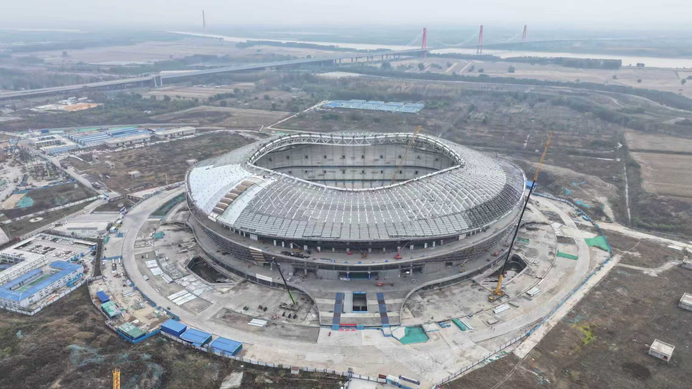 黄河体育中心专业足球场项目位于济南新旧动能转换起步区,总建筑面积19.7万平方米,采用国际足联FIFA最新标准 ,是山东省首个6万座专业足球场,落实黄河流域生态保护与高质量发展战略重点工程,目前处于索结构施工阶段,预计2026年竣工。