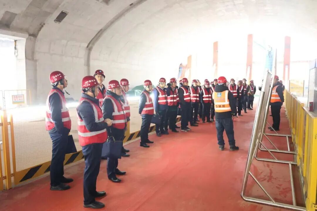 会前,与会人员共同来到济南轨道交通7号线龙奥大厦站现场,实地观摩项目车站基坑与暗挖段施工情况,重点考察了车站大跨无柱拱形顶板结构及其防渗漏治理体系,对现场管理和工程质量给予充分肯定,并就项目体系化管理、流程化管控和精细化施工等方面进行深入交流。