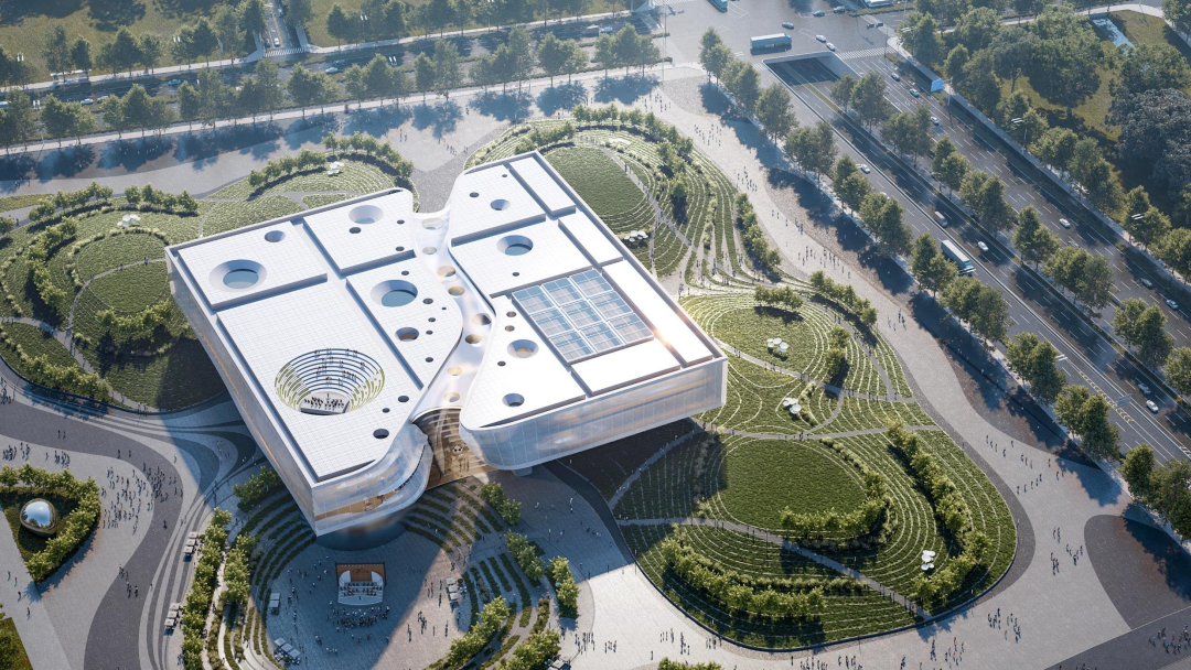济南起步区科技馆项目总建筑面积 7.89 万平方米,是鹊山生态文化区的重要组成部分,打造集科普教育、科技展示、文化交流、互动体验于一体的大型科技场馆,内部设置包括儿童展厅、球幕影院等空间,满足全年龄段观众的科普需求与沉浸式体验。