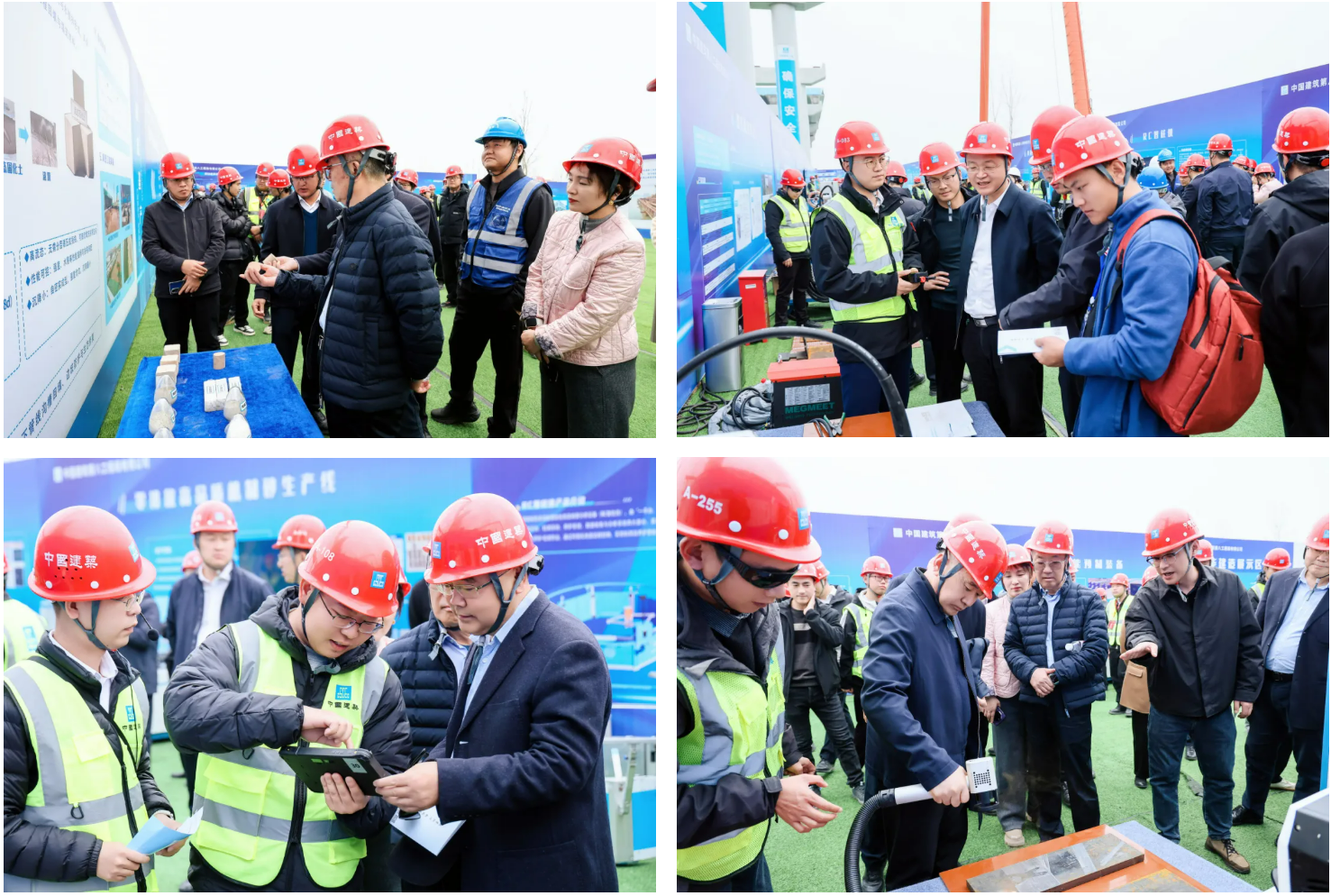 在现场观摩环节,与会人员来到武汉都市圈环线高速(六环线)蔡甸段二标项目,实地了解公司在桥梁工程智能建造、数字化施工、精益管理、环境保护等方面取得的成果,对项目现场管控与成品质量予以肯定。该项目设置 “企业文化、绿色环保、智能建造、安全生产、质量管控”5 大展区,通过产品演示、展板解说等形式,展现 “智慧赋能、标准筑基、绿色优先” 的经验成果。