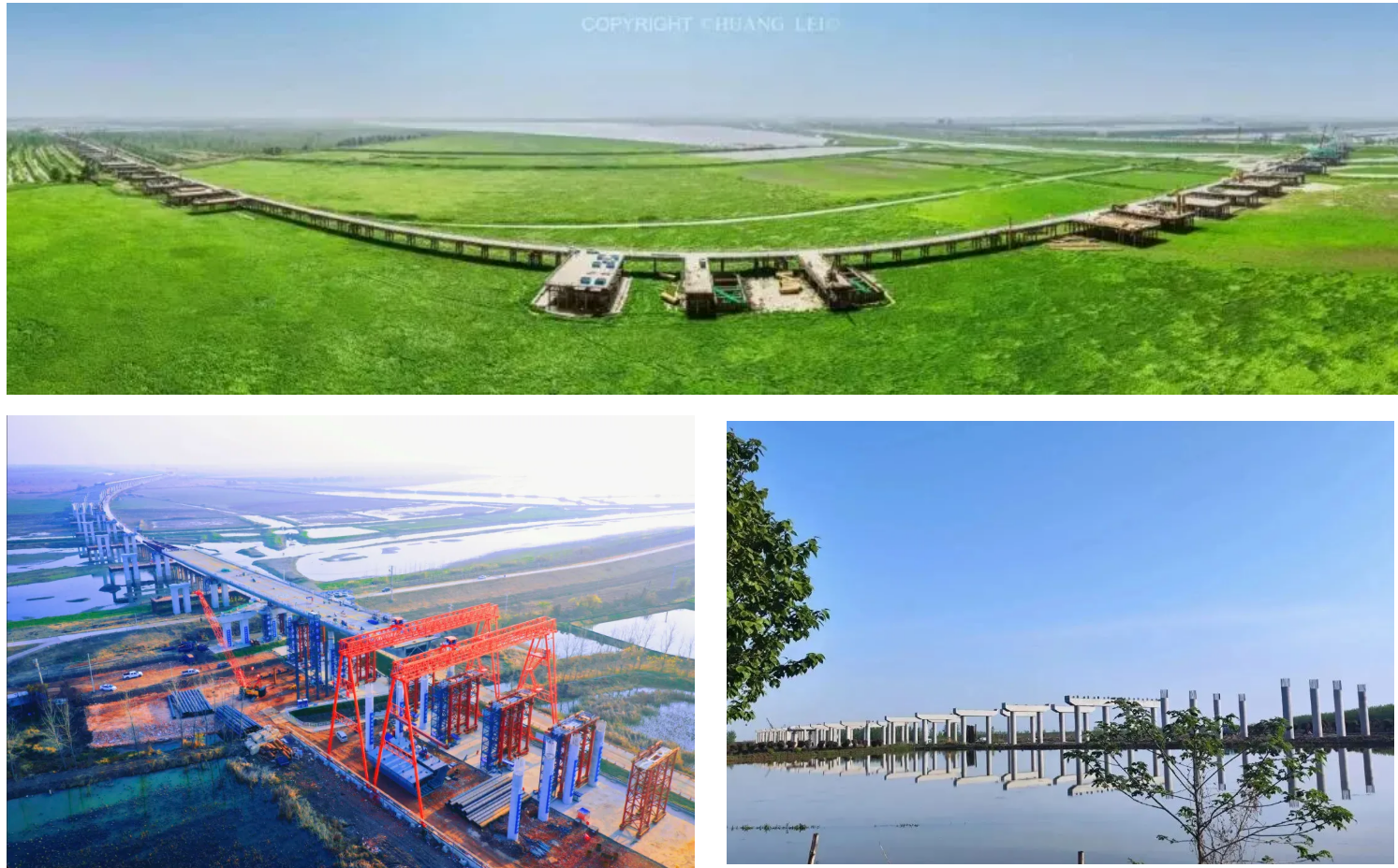 武汉都市圈环线全长约 360 公里,是湖北省 “十四五” 规划重点工程,其中蔡甸段二标项目主线全长 14.16 公里,是中建八局首个穿越国际湿地的高速公路,涉水桥梁占比 90%,穿越地球上同一纬度湖泊群中唯一的典型淡水湖泊和沼泽湿地 “武汉蔡甸沉湖湿地”,攻克湿地保护与工程建设双重挑战,多次获得业主与自然保护区管理局表扬。