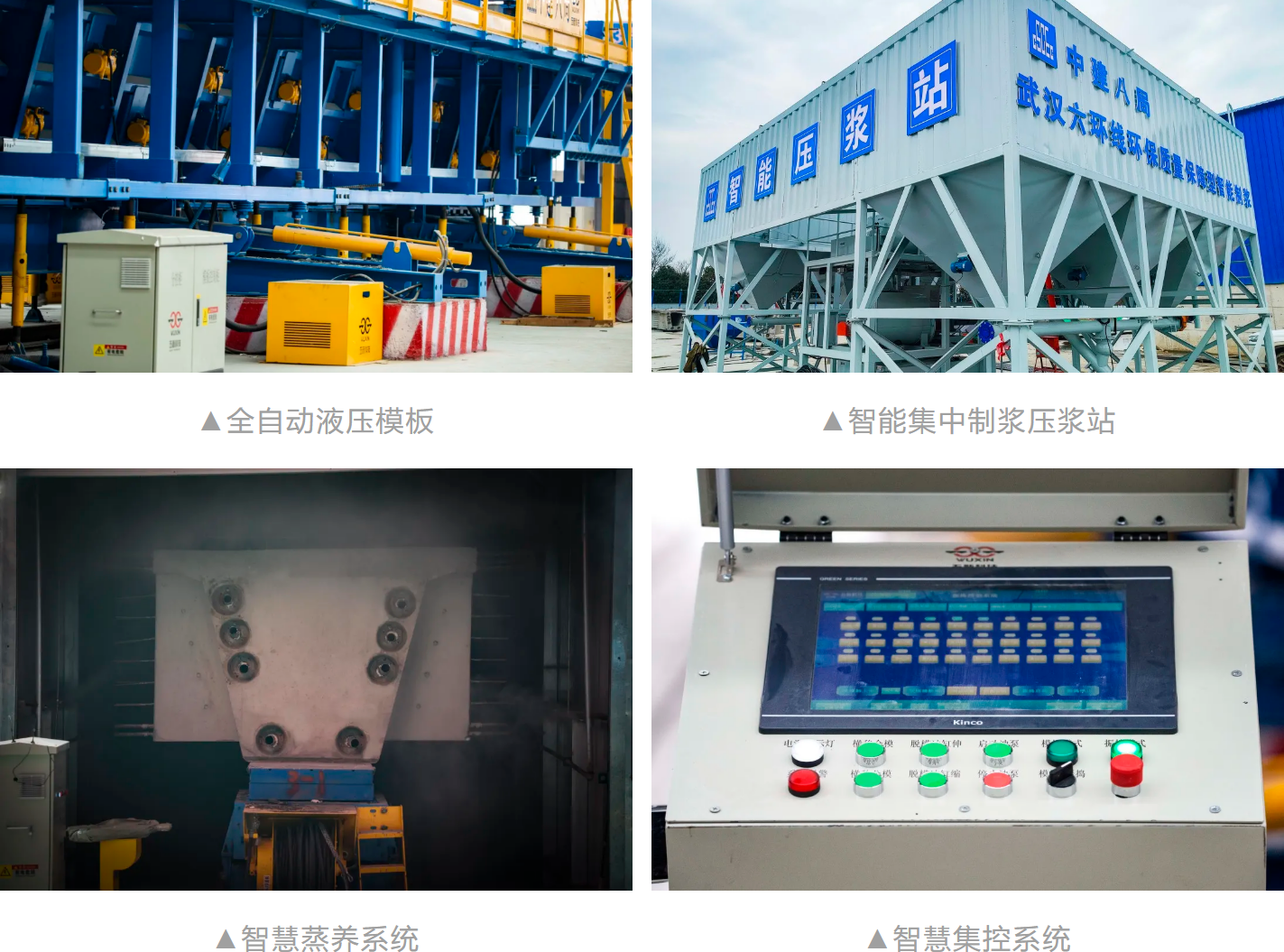 质量管控展区集中展示了项目智慧梁场的智能化生产线和施工工艺,包括全自动液压模板、智能集中制浆压浆站、移动底模台车、智能钢筋弯曲中心等设备,可实现各工序 “流水加工、无缝衔接”,生产线配备 “智慧集控系统”,提升梁体预制效率 40%。
