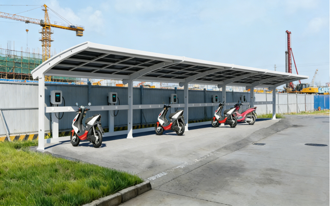 ▲模块化电动自行车停放与充电车棚