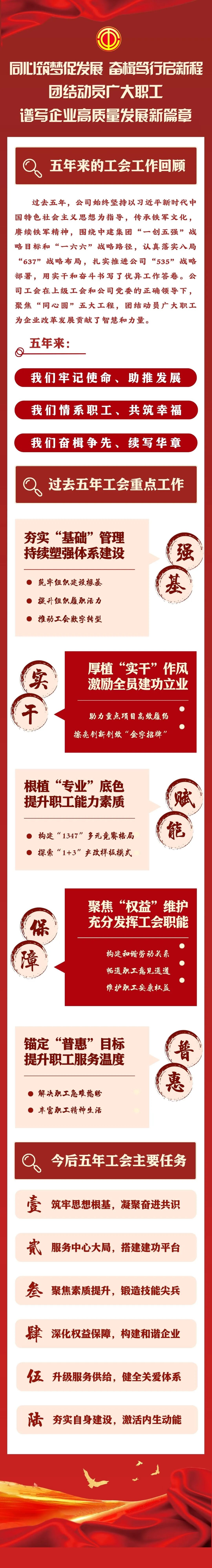 公司党委副书记、工会主席聂丽作题为《同心筑梦促发展 奋楫笃行启新程 团结动员广大职工谱写企业高质量发展新篇章》的工作报告,系统回顾了公司工会过去五年的工作,明确了未来五年工会工作的总体思路和重点任务。