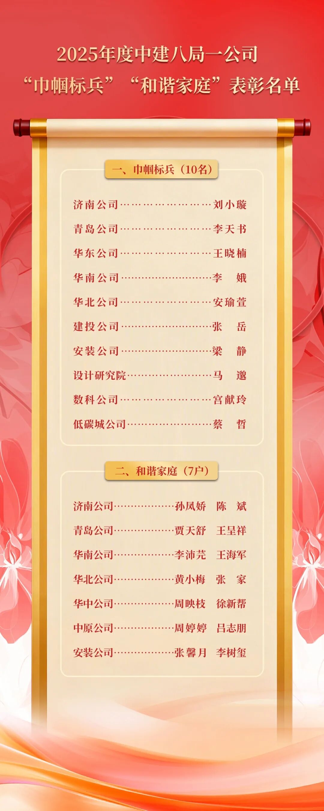 立足岗位,她们是攻坚克难的中坚力量,用专业与敬业助力企业发展。回到生活,她们是各自家庭的“半边天”,用温柔与诗意装点岁月日常。“三八”国际劳动妇女节到来之际,公司工会评选出10名“巾帼标兵”、7户“和谐家庭”。