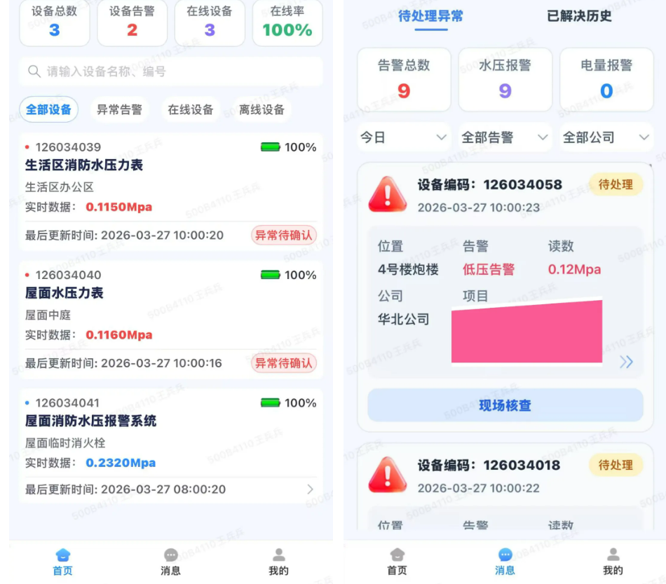 在上海综保区新建项目,20台智能消防终端已经接入所有地下管廊、楼层管井,动态开展消防管网监测作业。管理人员可以一键获取现场各部位管网压力、阀门状态等信息,时刻保障消防系统运行正常,有效提升现场消防应急能力。