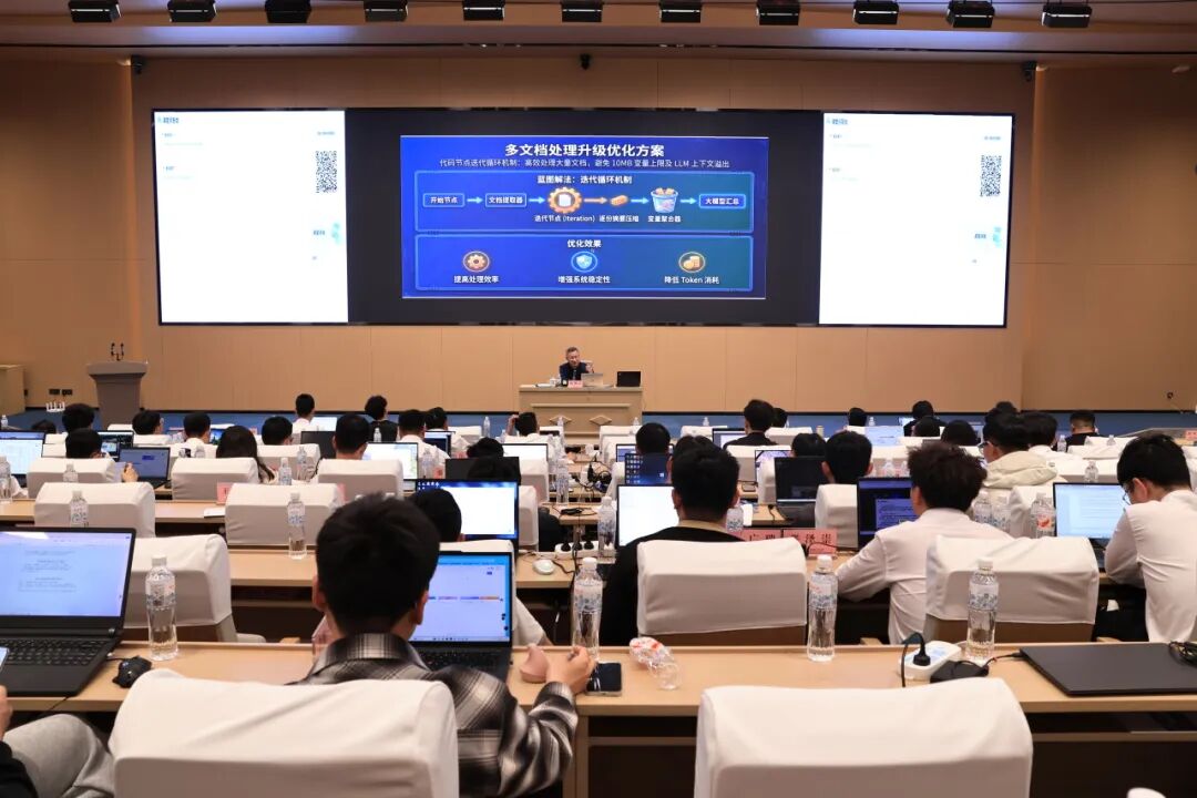 培训采取“训战结合”模式,设计了“从开发到产出”的递进式训练路径。讲师结合中建AI平台2.0的强大功能,针对首届AI创新应用大赛进行选题辅导,引导学员围绕项目进度管理、商务数据测算、现场安全隐患识别等建筑行业核心业务场景,开展“业务痛点+AI解决方案”的实战推演。