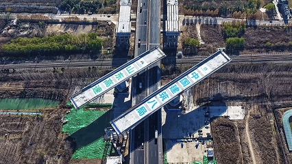 在桥梁浇筑阶段,项目创造多项施工纪录与技术突破。主墩高度超 12 米,支撑最长 170 米的大节段浇筑箱梁,单节段悬臂浇筑最长达 9 米、最大重量约 700 吨;在国内高速公路建设中首次应用大节段智能悬灌造桥机,其可随浇筑进度同步移动,使最大浇筑节段长度提升至传统工艺的 3 倍,工期缩短约 40%。施工前,项目通过精确监测与建模分析实现造桥机重载同步行走和模板毫米级精度控制,创新应用变截面全封闭兜底防护技术保障铁路、公路安全通行;造桥机搭载智控预警系统,可 24 小时动态监测外部环境及梁体受力状态,实现自主识别与智能预警。