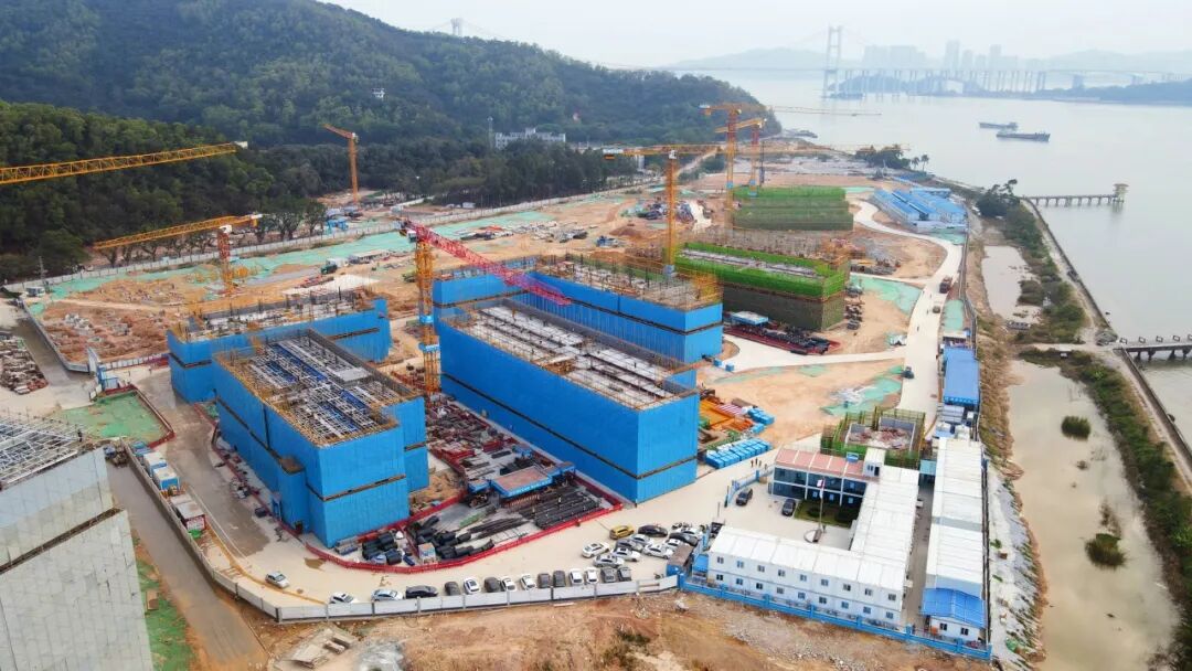 项目依海而建,与珠江入海口最近处直线距离不足 10 米,多条水系将校园划分为一座座 “科学浮岛”,通过连廊相互连接,构建出风景优美、形式创新的特色校园。为保障校园如期交付,项目团队提前策划、快速进场,成功克服滨海环境基坑水位高、淤泥厚度大等难题,仅用 3 天便完成桩机进场及试桩工作,目前正以 7 天每层的速度推进工程建设,持续刷新进度。
