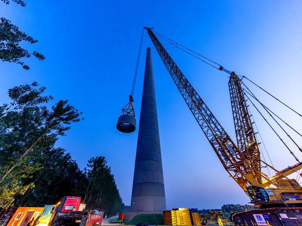 近日,中建八局一公司承建的临沂市郯城县 TC-1 风电项目完成全部 31 台国内最高混塔风机吊装施工,项目全面转入调试与并网发电阶段,将于年底陆续开始输出清洁电能,开启由 “风” 转 “电” 的绿色征程。