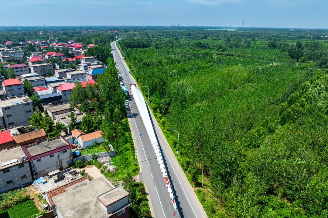 面对 5000 余个塔筒管片的生产任务,项目在 60 公里外建立临时 “卫星工厂”,40 天内投产;通过提前规划叶片 “最优运输路径”,新建、改造道路 25.4 公里,让百米巨大叶片从最远 600 公里外顺利运抵。