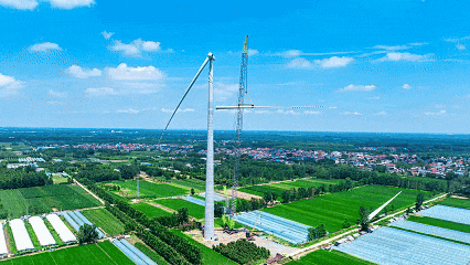 并网当日,经过 10 个小时、117 次指令传递,巨大的风机顺利转动,持续输出的清洁电能汇入电网,能满足区域 40 万户用电需求,“风车”、田野、村落相映成趣,勾勒出人与自然和谐共生的绿色画卷。
