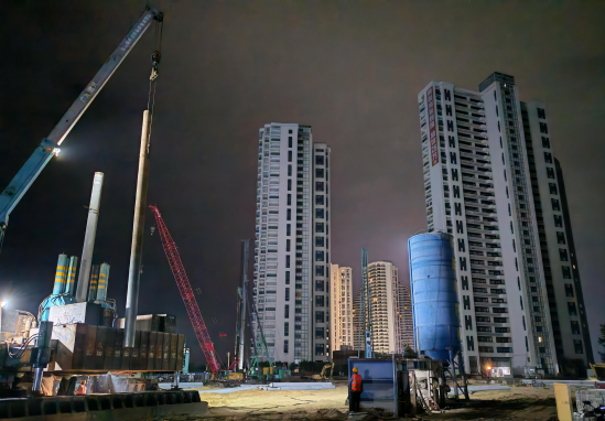 项目距离海边仅 50 米,面临高盐雾、高湿度的复杂环境,项目团队联合设计单位,将桩基优化调整为预制混凝土管桩,有效隔绝钢筋与海水等腐蚀介质接触,大幅提升基础整体耐久性,采用低噪音、无泥浆污染的静压桩法施工,降低对周边居民干扰与自然环境影响。
